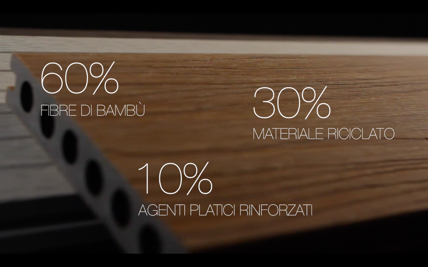 È un prodotto amico dell'ambiente, composto da bambù, materiali naturali di riciclo ed una piccola parte di resine plastiche tecnologiche.